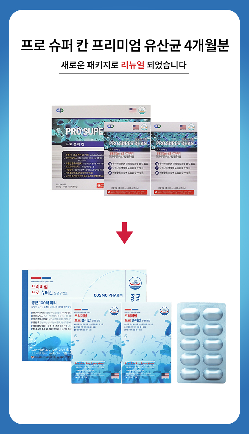 [코스모팜] 프로 슈퍼 칸 프리미엄 생유산균 4개월분 100억CFU 장용성캡슐